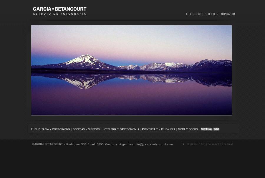 Lo integran los fotógrafos profesionales Federico García y Pablo Betancourt García • Betancourt. Estudio de fotografíaDirección: Rodríguez 368 Cdad 5500 Mendoza Teléfono: 0261-4233828. E-mail: info@garciabetancourt.com |